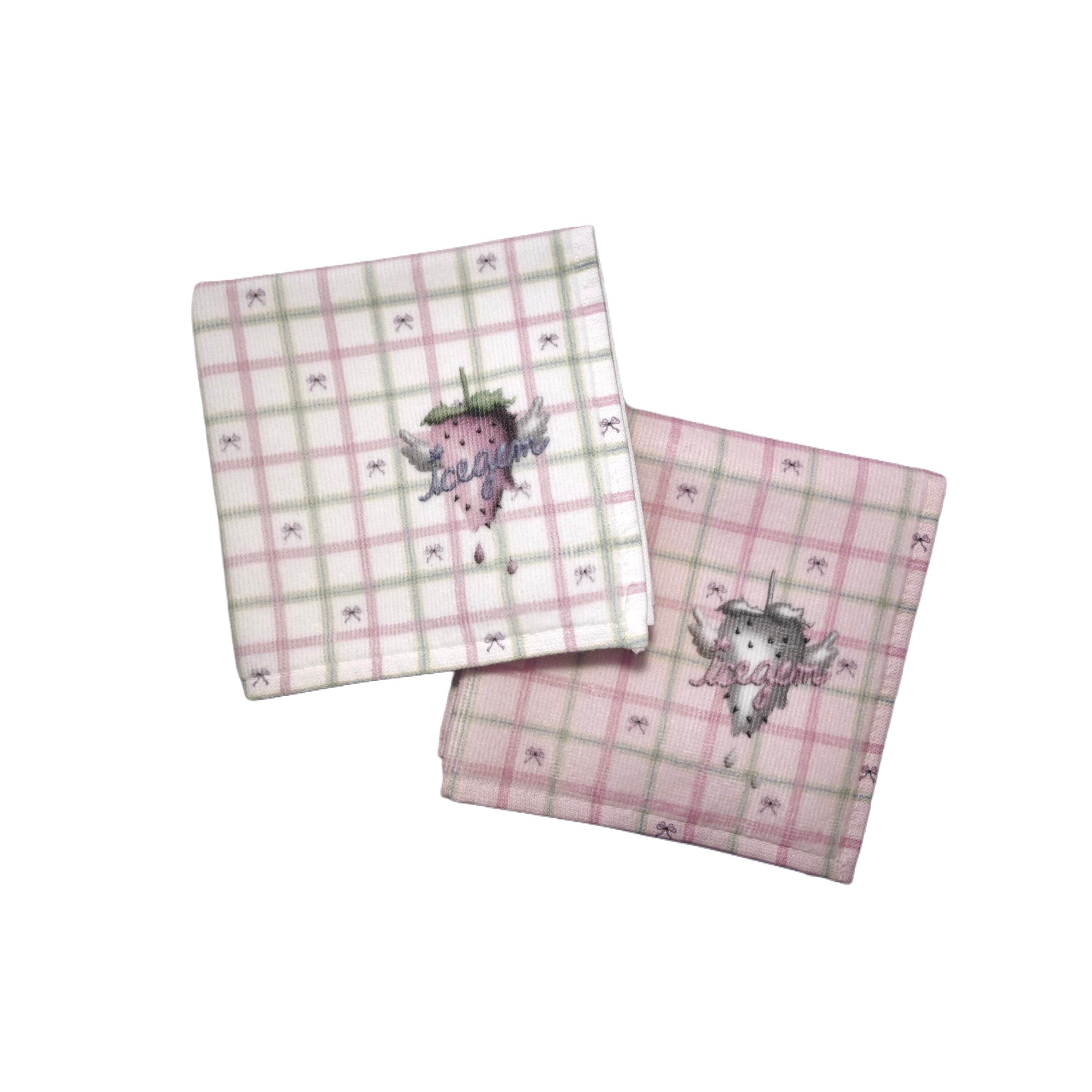 上品なチェックとリボン柄が魅力のハンドタオル。